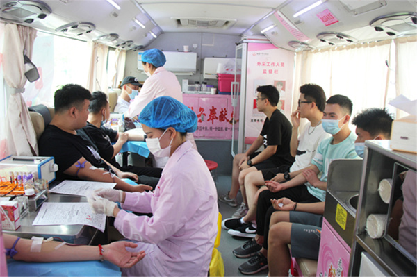 現(xiàn)場除了積極獻(xiàn)血的同學(xué),參與服務(wù)的志愿者們也非常熱情,他們細(xì)心地指導(dǎo)同學(xué)填寫體檢表,為獻(xiàn)血者倒水,發(fā)放紀(jì)念品,向前來咨詢的同學(xué)宣傳無償獻(xiàn)血,不少人也在輪換休息后走上獻(xiàn)血車伸出手臂勇敢獻(xiàn)血。