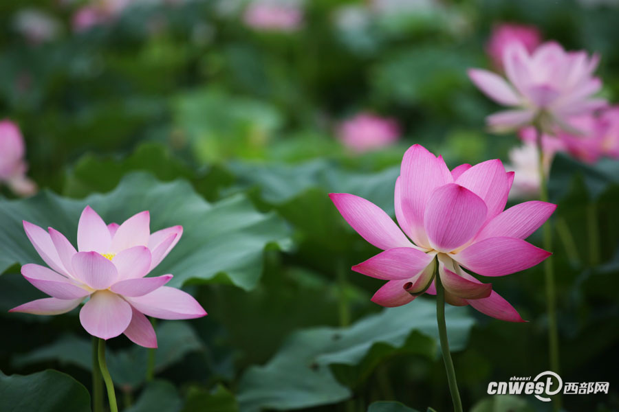 曲江池荷花爭(zhēng)相開放 端莊美麗引游人