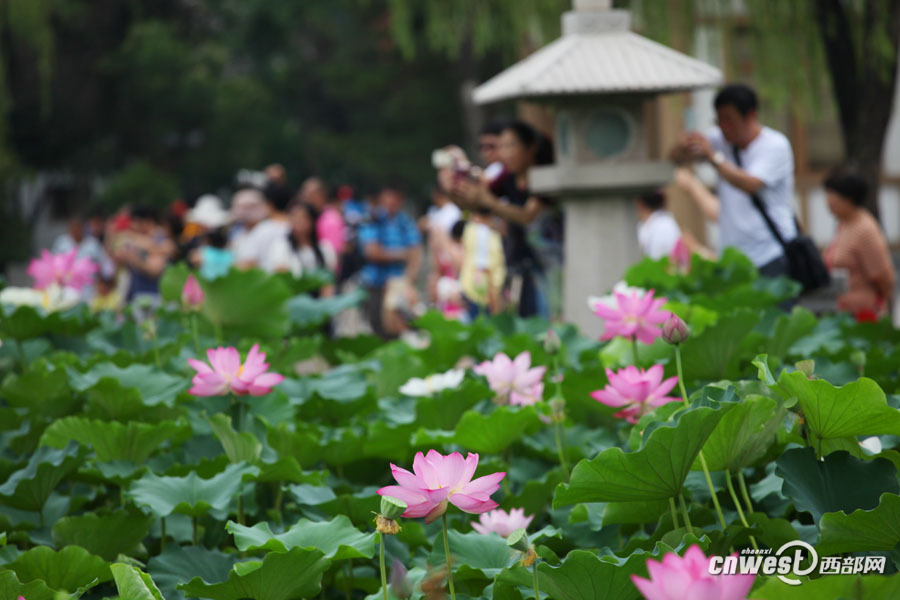 曲江池荷花爭(zhēng)相開(kāi)放 端莊美麗引游人