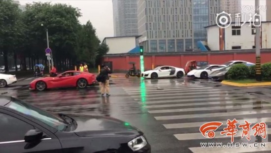 為保證婚禮車隊(duì)順利通過,開道的3輛豪車先后堵在三個十字路口中間“封閉管制”。昨日,“封閉管制”的一豪車駕駛員被交警處罰,并被移交公安部門。
