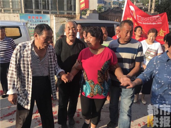 下午5點(diǎn)多鐘,李大叔走出村口迎接這失散了22年的女兒,鞭炮,鑼鼓聲聲震天, 警車(chē),警燈不斷閃爍。
