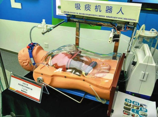 西安交大外科夢(mèng)工廠研發(fā)制造的吸痰機(jī)器人。