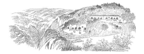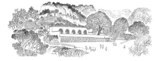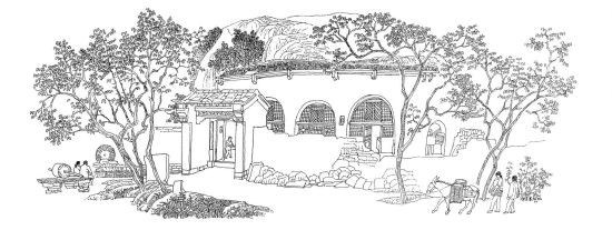 陜北革命舊址寫生,面對復雜的景物,須瞬間分析,即刻做出判斷、選擇、取舍、構(gòu)圖,抓住整體、突出特點,果斷下筆。以線寫生,務求準確,落筆后,線不可重復,也無法修改。寫生時,常常左手打傘,天熱時遮陽光,每當大汗淋漓,也顧不上擦;下雨時,盡量用傘遮住畫紙,堅持畫完,即便衣服濕透也無所謂。如果對寫生作品不滿意時,就重新赴舊址寫生,僅涇陽縣云陽革命舊址,他就去過4次,清澗縣石嘴驛去了3次,直到畫好為止。