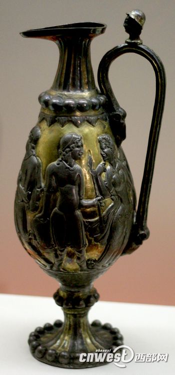 10月11日,據(jù)陜西歷史博物院官方透露,這件中國(guó)人收藏的雕刻有希臘神話故事的波斯鎏金銀瓶已經(jīng)來到西安,將和其它140件來自西北五省(區(qū))的絲綢之路主題文物一道,亮相10月17日開展的《長(zhǎng)安絲路東西風(fēng)》展上。