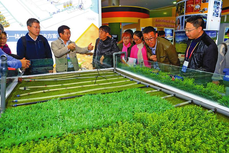 11月5日,在第24屆農(nóng)高會(huì)A館,參會(huì)者正在了解微灌、滴灌節(jié)能用水系統(tǒng)。 本報(bào)記者 安濤 劉強(qiáng)攝