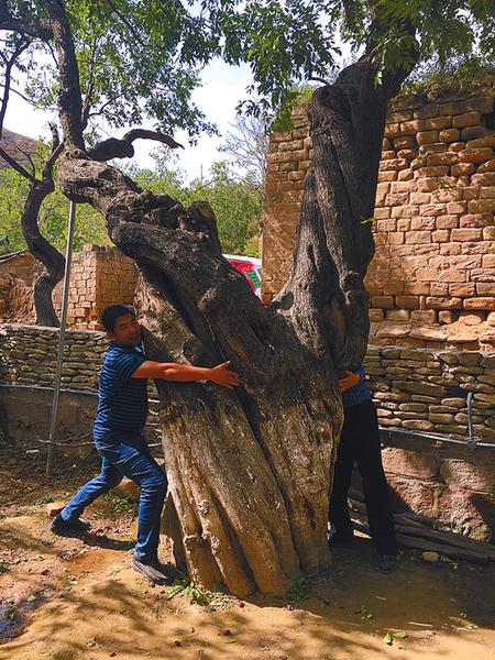 佳縣朱家坬鎮(zhèn)泥河溝村,在陜北紅棗栽植的歷史上,是一個富有神奇色彩的地方。村里有一棵“棗樹王”,據(jù)專家考證已有1300多年樹齡,僅樹干周長就超過3米,兩個成年人也抱不攏,至今每年仍產(chǎn)紅棗近百公斤,被譽為棗樹中的“活化石”。在“棗樹王”周圍,還有百余棵生長了近千年的古棗樹,形成了一個頗具特色的古棗園。園中的石牌坊上刻著“棗源”二字,足見栽植歷史的悠久和對陜北紅棗栽植的影響。