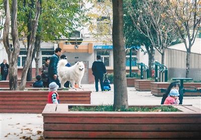11月7日下午,記者分別來到這兩個(gè)小區(qū)進(jìn)行走訪。在鳳棲西路寧東林業(yè)局家屬院看到,下午六點(diǎn)多的小區(qū)小廣場上,不少居民在健身鍛煉,還有不少居民帶著小孩子活動(dòng)。突然有一只白色的大型犬竄入人群四處亂竄,一時(shí)間不少居民嚇得紛紛抱起孩子躲避。另外小廣場地上,不時(shí)能看到狗的糞便。