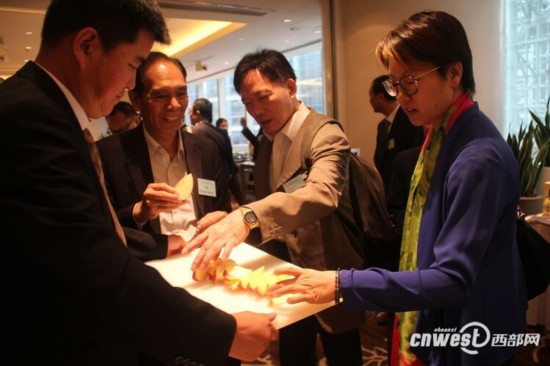 “獼猴桃營養(yǎng)價值高,在香港很受歡迎。目前香港的獼猴桃大部分都是從新西蘭、加拿大進(jìn)口的,看了陜西的獼猴桃,我覺得我們應(yīng)該有合作的機(jī)會!毕愀酃P架山獅子會基金籌備事務(wù)主席陳笑玲在與眉縣秦旺果友獼猴桃專業(yè)合作社的銷售部經(jīng)理武繼宏交流后,陳笑玲當(dāng)場留下電話,希望在會后有進(jìn)一步的交流。