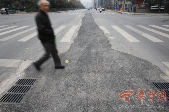 “這是豆腐渣中的豆腐渣!本痛,馬路邊兩個(gè)小商販表示,這段路拆除圍擋還不足一個(gè)月,在第二天他們就已看出問題不小,“因?yàn)檐囈贿^去會帶起來很多石子亂甩,幾天前擺上了活動(dòng)隔離墩,天天有人來掃。