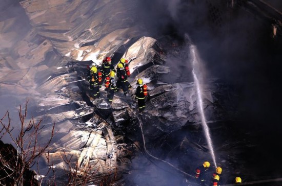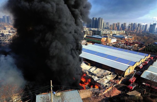 “大約在6點多吧,天還沒亮,我看到起煙了,剛一推開門就受不了,因為煙太大了!眰}庫與村民自建的樓房,最近處不到10米遠,一位女房東驚魂未定地告訴記者,這排倉庫的面積大約有20畝,臨近年關,儲存的貨物很多,主要是生活用品和塑膠制品,“每天都能看到貨車進進出出!