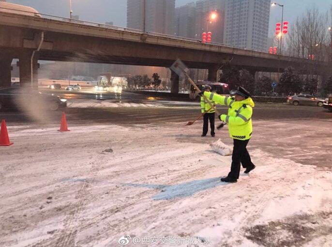 新城轄區(qū):二環(huán)輔道有結(jié)冰情況,韓森路路面,小東門(mén)盤(pán)道有積雪,咸寧路,華清路路面有結(jié)冰情況,都已經(jīng)通知市政清理撒鹽!痉e雪、結(jié)冰5處】