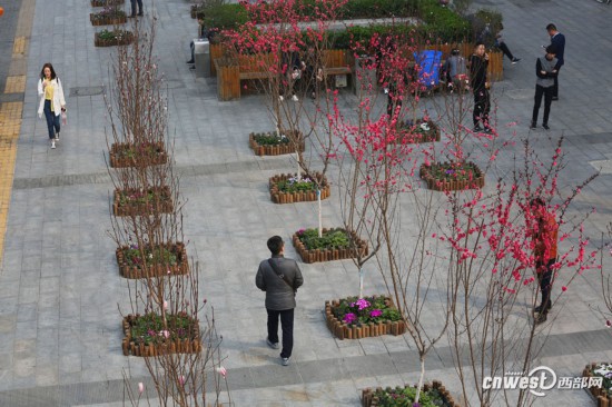 西部網(wǎng)訊(記者 魏永賢) 3月11日,西安小寨街頭的梅花、玉蘭花盛開,不少市民不相信這是真花,有人貼近看仔細(xì)看后說(shuō):“真的是真花!KFe安康新聞網(wǎng)