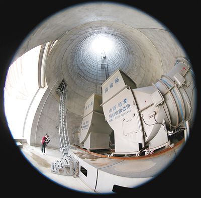 遠(yuǎn)遠(yuǎn)地看,“凈化塔”更像一個(gè)大煙囪。一腳踏進(jìn)塔內(nèi),首先感受到的就是撲面而來的風(fēng),就是這股風(fēng)將臟空氣“吸”進(jìn)體內(nèi)進(jìn)行凈化。記者看到,在塔體的三面,有不同材質(zhì)的過濾網(wǎng)。臟空氣經(jīng)過過濾網(wǎng)之后,通過導(dǎo)流塔將干凈的空氣排出。其原理和家用空氣凈化器差不多,只是“凈化塔”的能源不是電,而是太陽能,于是有了“大型太陽能城市空氣清潔綜合系統(tǒng)”這個(gè)“全名”,但是曹軍驥研究員還是習(xí)慣叫它‘凈化塔’,大概是因?yàn)樗?4米高的大雁塔身高差不多,又能凈化空氣。