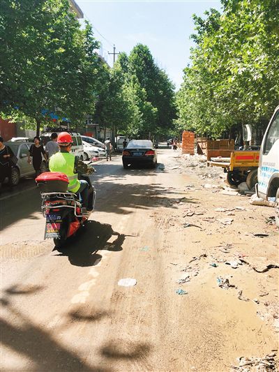 除了擁堵外,臟亂問(wèn)題更是讓大家煩心。記者看到,在體育館東路北段的西側(cè),建筑垃圾、磚塊堆、塑料袋和廢棄材料等隨處可見(jiàn)、任意堆積,人行道已不復(fù)存在。一工地內(nèi)渣土與水混合在一起,使這條路泥濘不堪,空氣中也彌漫著嗆人的塵土味道,有的居民出行戴了口罩!斑@個(gè)工地在這里一個(gè)多月了,垃圾、泥土、揚(yáng)塵到處都是,灑過(guò)水后路上又變得泥濘,統(tǒng)共一百來(lái)米的路,大路走不成,人行道被霸占。”家住碑林區(qū)工商局家屬樓的魏師傅推著嬰兒車,正在小心翼翼地邊走邊看,以躲避過(guò)往車輛。