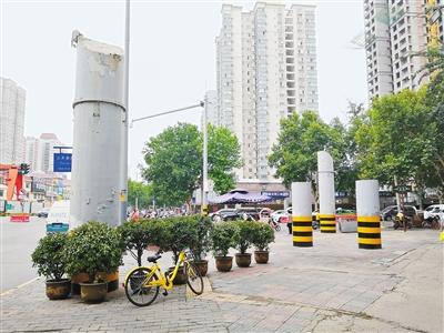 “太不美觀了,這些灰色的橋墩很難看,在人行道中間也擋路,友誼路和太白路分別是東西和南北方向的主干道,人流量也很大,上下班高峰行人多時(shí),它們特別礙事。其實(shí)拆掉是最好的選擇,路面還能再開(kāi)闊一點(diǎn)。”李女士說(shuō),這些橋墩原本灰色的柱體表面漆皮紛紛脫落,斑駁不堪,一到夜間視線不好,經(jīng)常有行人走著走著就撞了上去,存在很大的安全隱患。因此,近期橋墩下部被刷上了黑黃相間的警示標(biāo)志。