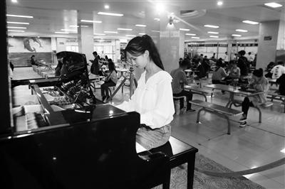 學(xué)生在食堂里彈鋼琴 記者 黨運攝