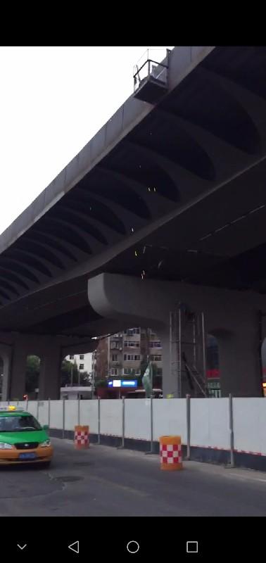 華商報記者在梁先生提供的現(xiàn)場視頻上看到,橋上正在電焊作業(yè),火花紛紛濺落,盡管橋下方有圍擋,圍擋外還放了兩個墩子,但火花仍不時濺到墩子外面的路面上,旁邊就是川流不息的車輛和騎摩托的人群,有的車差點(diǎn)就被燒到,非常危險。