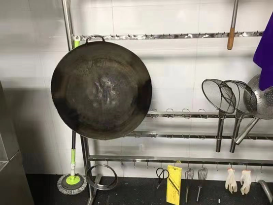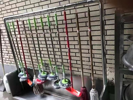 清洗煙罩專用拖把,有明確標識,統一懸掛在操作間室外東南角