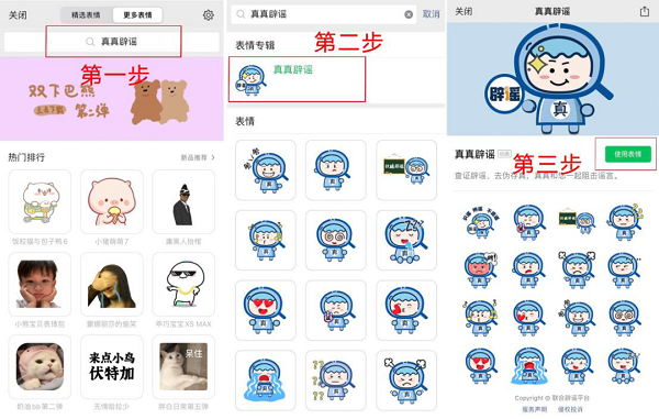 微信表情商店搜索“真真辟謠”