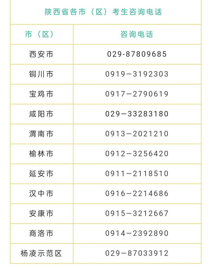 陜西省教育考試院提醒考生,所有咨詢電話均為各市、縣(區(qū))考試招生機(jī)構(gòu)官方平臺發(fā)布,如有變動(dòng),以省教育考試院最新通知為準(zhǔn)。