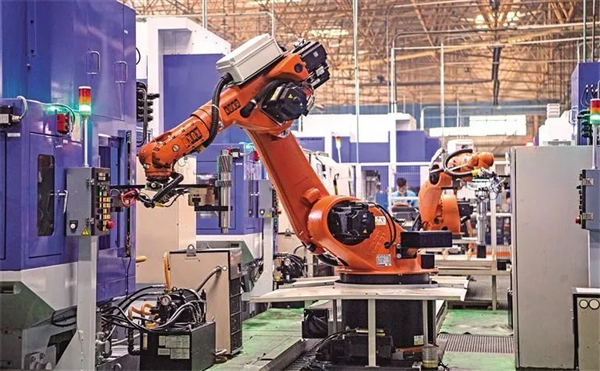 5月10日,工業(yè)機(jī)器人在法士特集團(tuán)重型汽車變速器軸類產(chǎn)品自動化生產(chǎn)線上作業(yè)。記者 袁景智攝