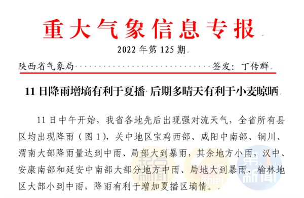 6月12日13時,陜西省氣象臺發(fā)布重大氣象信息專報。