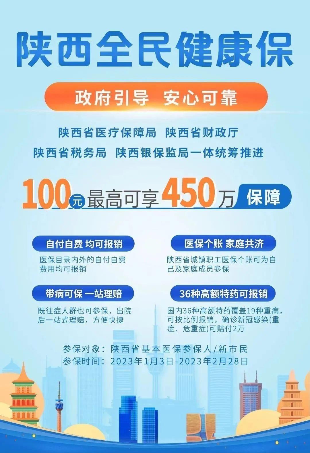 為了助力陜西省疫情防控,推動(dòng)復(fù)工復(fù)產(chǎn),陜西“全民健康保”還向參保人贈(zèng)送“新冠病毒保障責(zé)任”,無需參保人再額外支付保費(fèi),對(duì)2023年上半年確診新冠病毒重型或危重型的參保人,一次性給付保險(xiǎn)金2萬元。