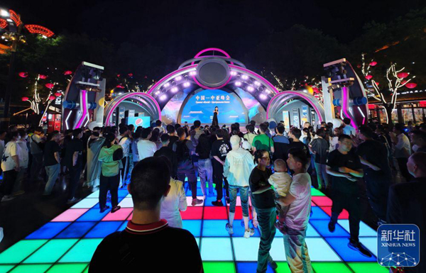 ↑5月15日,游客在西安市大唐不夜城游覽。新華社記者 張博文 攝