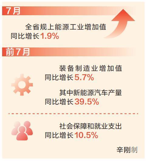 財(cái)政收支穩(wěn)定增長。前7月,全省一般公共預(yù)算收入2198.84億元,同比增長5.3%;一般公共預(yù)算支出4151.75億元,同比增長3.2%。其中,社會保障和就業(yè)支出同比增長10.5%,衛(wèi)生健康支出同比增長6.3%,節(jié)能環(huán)保支出同比增長4.3%。