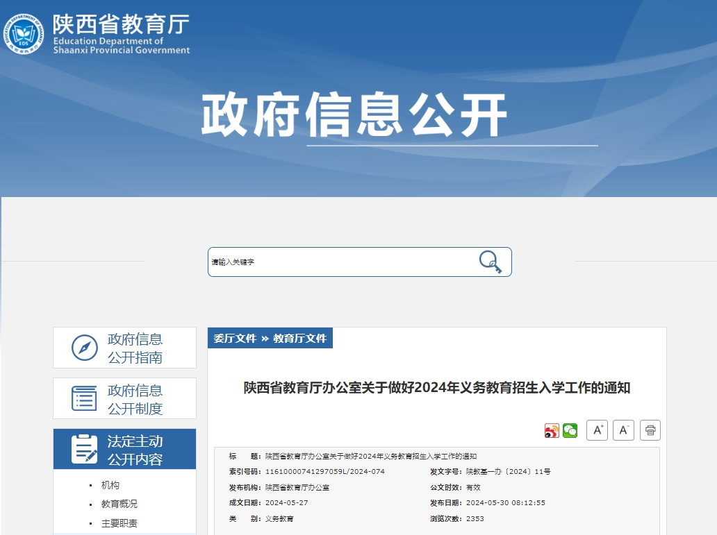 陜西省教育廳辦公室關(guān)于做好2024年義務(wù)教育招生入學(xué)工作的通知