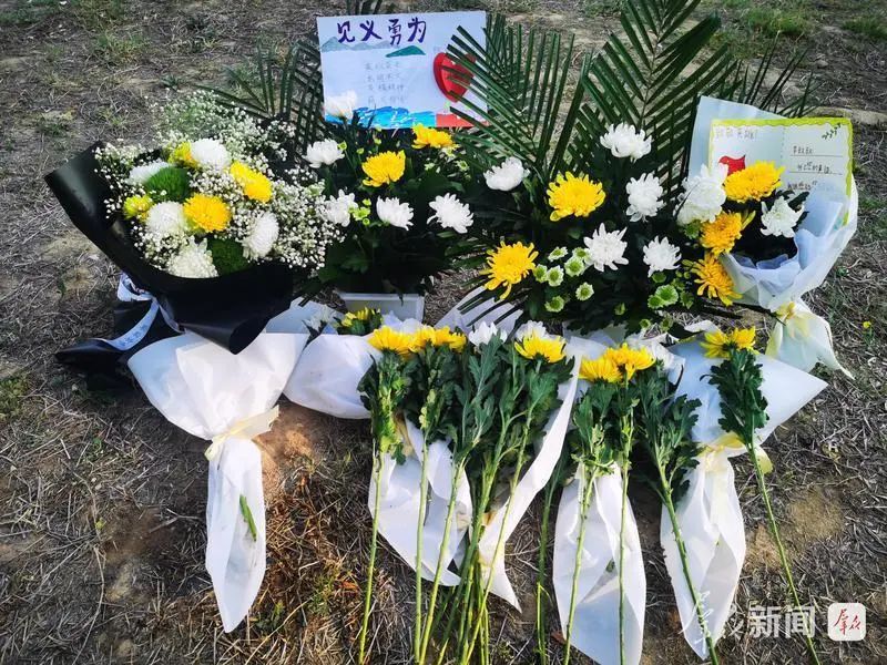 在李靜毅下水救人的河灘附近,自發(fā)前往悼念的群眾擺放鮮花、紀(jì)念卡,向這位救人英雄寄托哀思、獻上敬意。