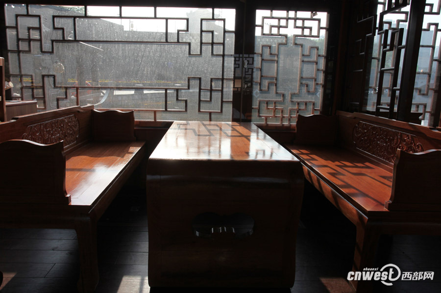 這艘十七八米長的仿古船,船內(nèi)景。