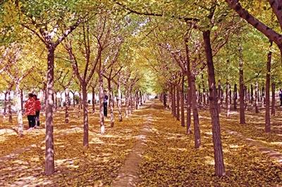 金黃色的銀杏葉鋪滿地面 10月26日,記者路過(guò)大荔縣許莊一片50多畝的銀杏林時(shí),發(fā)現(xiàn)了這個(gè)當(dāng)?shù)赜忻摹熬W(wǎng)紅地”。金黃色的銀杏葉鋪滿大地,為厚重的黃土穿上了艷……