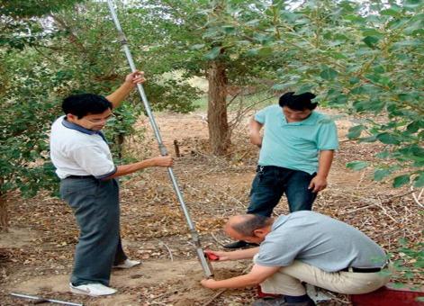 邵明安(左)在甘肅臨澤開展野外調(diào)查時打土鉆 西北農(nóng)林科技大學(xué)供圖 他生長在南方的魚米之鄉(xiāng),卻在西北旱塬默默耕耘了36年。為研究水分在干旱半干旱土壤中的運……