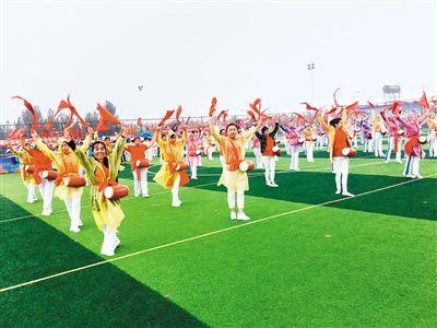 開幕式上精彩的健身腰鼓表演 趕豬入圈、摸石過河、顆粒歸倉……9月27日,高陵區(qū)耿鎮(zhèn)街道周家村生態(tài)休閑健身園熱鬧非凡,慶!爸袊r(nóng)民豐收節(jié)”金秋農(nóng)民趣味運……