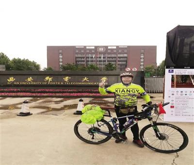 為了中秋節(jié)與家人團(tuán)聚,63歲的王長寶從遼寧丹東騎自行車抵達(dá)西安。 記者 趙麗莉 攝 王長寶從丹東老家出發(fā) 63歲的王長寶在今年這個(gè)中秋節(jié)前,完成了一個(gè)挑戰(zhàn)自……