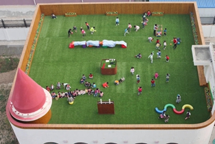 2015年10月20日,陜西省西安市西影路一幼兒園的小朋友們?cè)谖蓓敳賵?chǎng)打球,翻跟斗,做游戲,捉迷藏…… 玩夠了,跳累了,躺在屋頂曬太陽(yáng)。漂亮安全的屋……