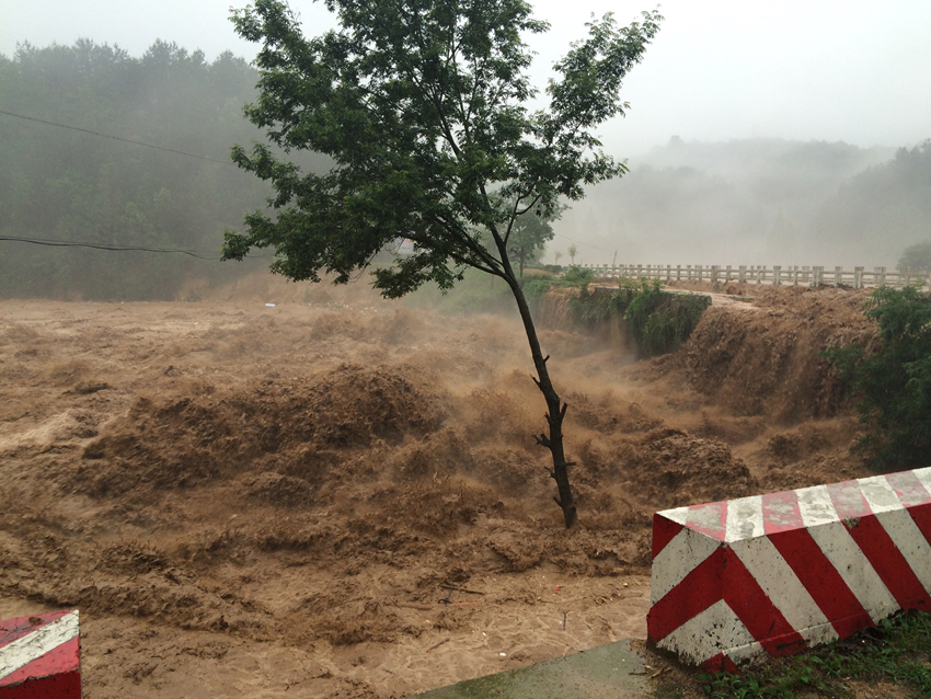 6月28日,南鄭縣牟家壩鎮(zhèn)一村子,洪水即將漫上公路 記者曾春 攝連日暴雨,讓漢中多地受災(zāi)。昨日,南鄭縣8人被困二樓房上,去救援的消防車(chē)也困在公路被水圍住。暴……