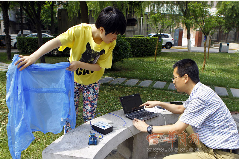 5月30日上午,西北大學(xué)馮老師用儀器進行紫外線照射實驗 華商報記者 閆文青 攝炎炎夏日來臨,你知道多少防曬秘密?市面上琳瑯滿目的各類防曬產(chǎn)品都靠譜嗎?本期華……