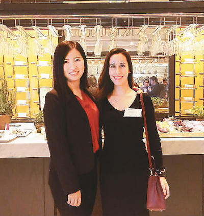 | 就讀于美國(guó)康奈爾大學(xué)酒店管理專業(yè)的張悅芊(左)積極參加校內(nèi)外的活動(dòng)。圖為她在學(xué)院校友會(huì)活動(dòng)上的留影。 |