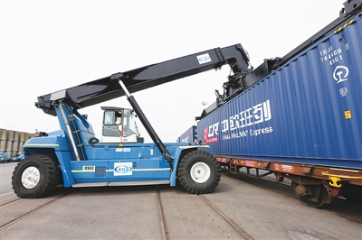| 中國國家發(fā)展改革委主任何立峰12月22日說,我國以“一帶一路”建設為重點,開放型經濟新體制逐步健全。中歐班列累計開行近7000列,市場化運營水平不斷提升。圖為2017年6月30日,在比利時澤布魯日港,工作人員將中歐班列沃爾沃汽車專列的一個集裝箱卸貨。從中國大慶出發(fā)經過20多天運行,運載著123輛沃爾沃S90汽車的中歐鐵路首趟汽車專列6月30日順利抵達比利時澤布魯日港,標志著“中國智造”的豪華汽車首次以鐵路專列形式銷往歐洲市場,同時也標志著中比兩國在“一帶一路”建設框架下的合作邁出了新步伐。 |