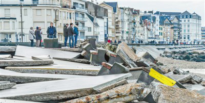 | 1月6日,法國北部維姆勒鎮(zhèn)的防波堤被“埃莉諾”風暴摧毀。新華社發(fā) |