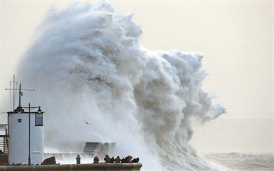 | 1月3日,在英國波斯考爾,“埃莉諾”風暴掀起巨大的海浪。新華社發(fā) |