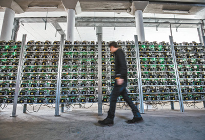 | 1月19日,奧地利伊布斯河畔魏德霍芬附近,一名“礦工”從加密幣“采礦”機(jī)組前經(jīng)過(guò)。人民視覺(jué) |