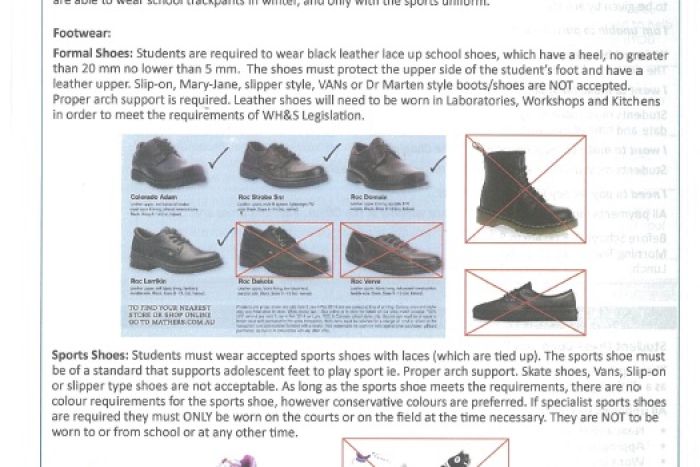據(jù)悉,學(xué)校規(guī)定,學(xué)生必須穿黑色系帶皮鞋,鞋跟必須在5毫米到20毫米之間,并發(fā)布了圖片說明鞋子的標(biāo)準(zhǔn)和零售商。
