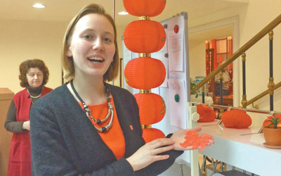 為了更好地傳遞這種信息,文化中心精心策劃了具有本地特色的春節(jié)特別活動(dòng)。位于莫斯科紅場(chǎng)旁的大型百貨商場(chǎng)“古姆”,是俄羅斯最負(fù)盛名的高檔商場(chǎng),從2月8日起,商場(chǎng)進(jìn)入了“春節(jié)月”,邀請(qǐng)著名室內(nèi)裝飾大師,巧妙地將中國(guó)福娃與俄羅斯套娃、中國(guó)喜蛋與俄羅斯彩蛋等中俄節(jié)日文化元素結(jié)合在一起。長(zhǎng)廊上,極具中國(guó)特色的“紅包”樹掛,讓人流連忘返的精品刺繡展品,充滿中國(guó)年味兒的民間藝術(shù)糖畫、剪紙,色香味俱全的中國(guó)美食,以及商場(chǎng)里循環(huán)播放的“恭喜發(fā)財(cái)”中國(guó)新年歌,讓中國(guó)春節(jié)走進(jìn)了當(dāng)?shù)匕傩盏纳钊。品嘗中華美食是春節(jié)期間最受外國(guó)人歡迎的一個(gè)文化活動(dòng),但這次玩出了“新花樣”——與俄羅斯總廚協(xié)會(huì)合作,舉辦中俄美食之夜,由中俄兩方的廚師團(tuán)隊(duì)采用相同食材做出不同菜品,由媒體記者、美食家和用餐客人共同品鑒。