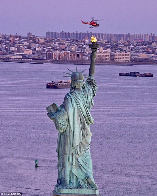 攝影師埃里克·亞當(dāng)斯(Eric Adams)碰巧拍到了直升機墜毀幾分鐘前飛過自由女神的照片。