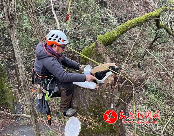 “在修復期間,我們聘請了國內(nèi)最頂尖的攀樹師、修剪師,攀登到樹頂,對樹體的枯枝、病腐枝進行了清理,然后對所有樹洞存在腐爛的地方,使用消毒滅菌的藥物進行處理,對影響樹體生長,可能造成二次傷害位置的漏洞、樹洞進行了封堵。我們使用的攀樹、修剪技術(shù)目前在我們陜西省內(nèi)屬于首次的應用,通過這次修剪之后讓陽光照進傷口,使古樹再次萌發(fā)了蓬勃生長的動力”,白河縣林業(yè)局自然保護地管理辦公室主任肖培軍介紹說。