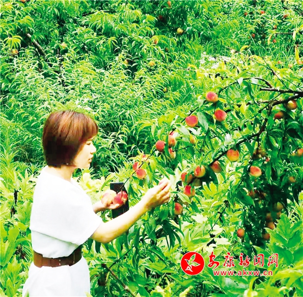 “聽說果園里的桃子熟了,今天就和姐妹們過來采摘一些新鮮的。你們瞧,這些桃子看起來多水嫩啊,一口下去又脆又甜,這一趟沒白來!”石關(guān)村村民賀芬芬一邊摘桃子一邊說。看著一個個又大又紅的桃子,游客們垂涎欲滴,穿梭于桃林之間,邊吃邊摘,盡情享受著田園采摘的樂趣。