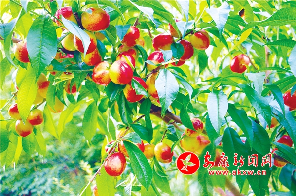 桃園主人向我們介紹,桃園里有十幾個品種的桃子,從五月下旬開始,一直到八月中秋陸續(xù)成熟。目前,油桃正值采摘期,已采摘5000余公斤,果園里黃桃、水蜜桃也已成熟,預(yù)計年產(chǎn)量1.5萬公斤左右,這也將帶來一筆不小的收入。